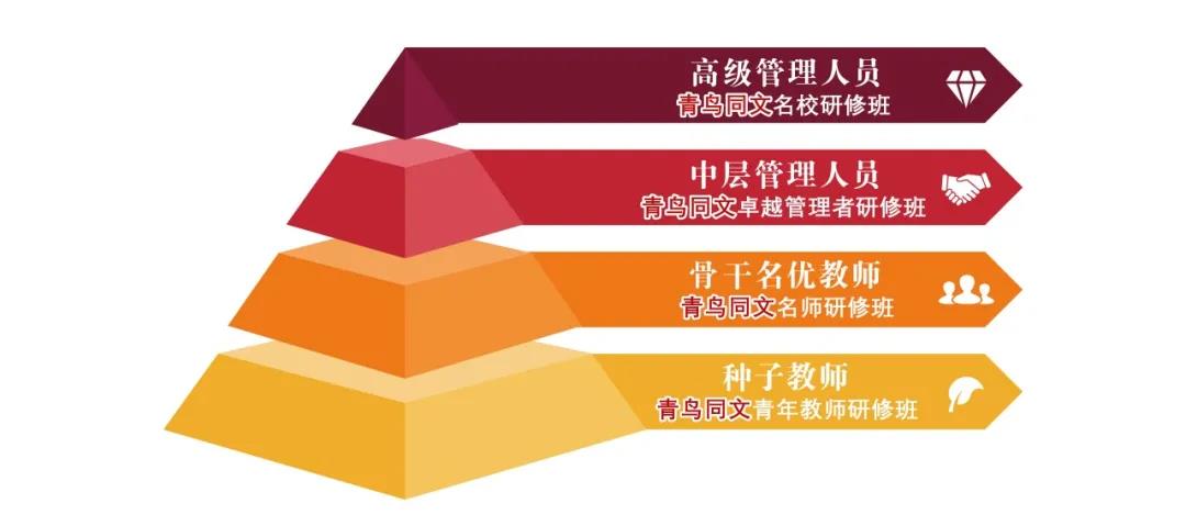 為堅定落實青鳥同文教育“3511人才工程”(30位校長、園長(含儲備)、50位中層管理者(含儲備)、100位學(xué)科同文骨干名師、150位同文種子教師),逐步實現(xiàn)“以事業(yè)凝聚人、以創(chuàng)新吸引人、以愛心團結(jié)人、以機制穩(wěn)定人”的人才發(fā)展理念。青鳥同文教育以各類人才實際發(fā)展需求為導(dǎo)向,有針對性地制定適配的課程體系,旨在培養(yǎng)優(yōu)秀的國際化學(xué)校領(lǐng)導(dǎo)者,未來教育的專家型人才,為集團戰(zhàn)略發(fā)展提供智力支持,全面落實集團的辦學(xué)理念和辦學(xué)目標(biāo),進而提升集團化辦學(xué)國際影響力。