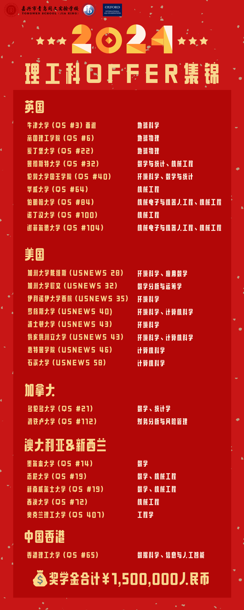 在剛剛過去的申請季,2024屆畢業(yè)生們在理工科領(lǐng)域展現(xiàn)出了多元化的興趣,并且獲得了多所世界名校的錄取以及豐厚的獎學(xué)金。
