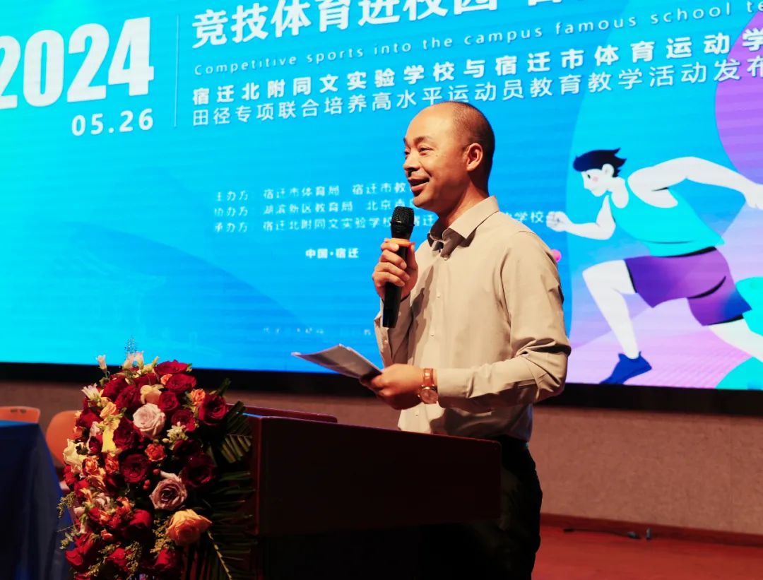 為進(jìn)一步推進(jìn)體教融合工作,加快宿遷市優(yōu)秀體育后備人才的培養(yǎng),有效推動“體教融合 名校育名隊”項目。5月26日,宿遷北附同文實驗學(xué)校與宿遷市體育運動學(xué)校隆重舉行田徑專項聯(lián)合培養(yǎng)高水平運動員教育教學(xué)活動發(fā)布會?;顒佑晌倚=處煱l(fā)展處葛旋主任主持。