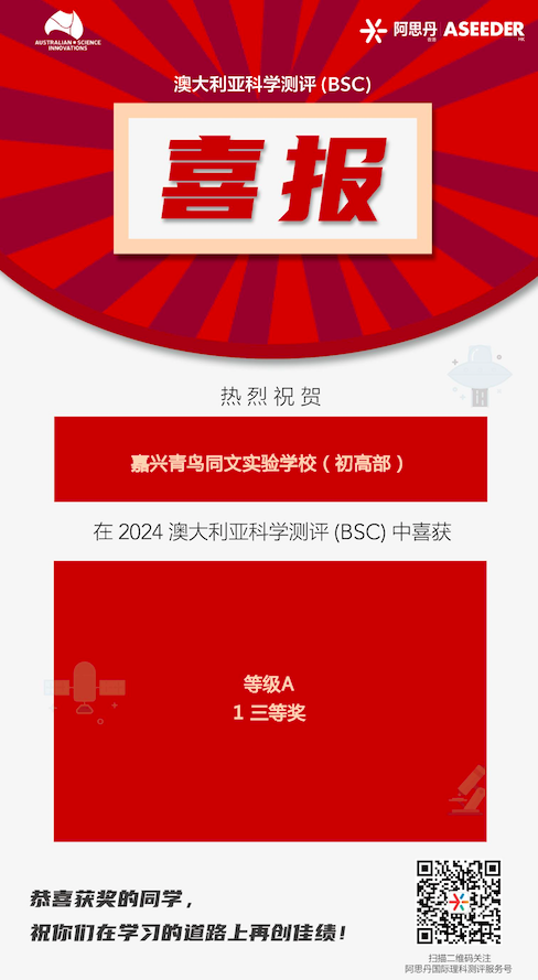 恭喜七年級(jí)的Cherry同學(xué),從我開(kāi)始推薦澳大利亞科學(xué)測(cè)評(píng)(BSC)競(jìng)賽時(shí)候的猶豫不決,到熟悉了歷年真題之后的決定報(bào)名,再到最終取得全國(guó)三等獎(jiǎng)的好成績(jī),對(duì)科學(xué)充滿熱情的她總是一步一步,穩(wěn)扎穩(wěn)打,水到渠成。