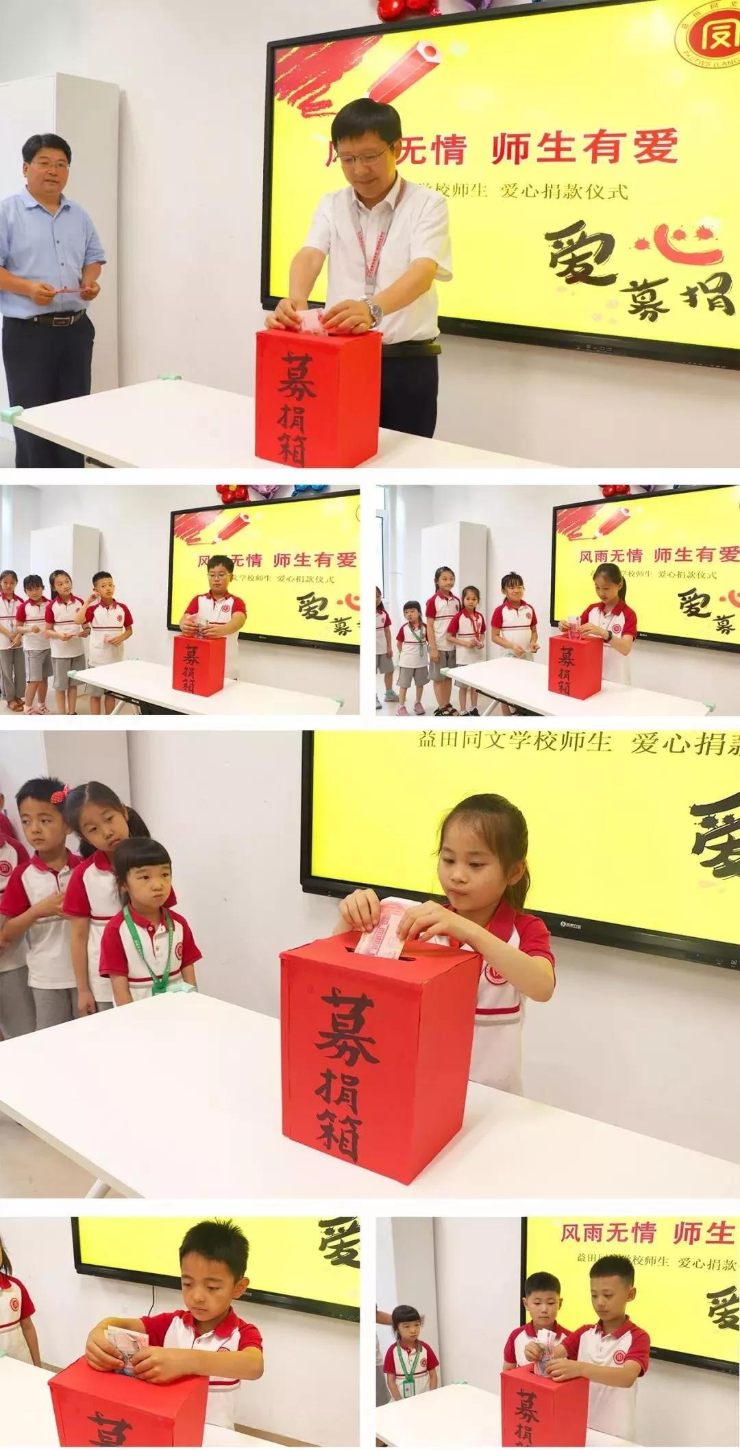 6月19日,益田同文學(xué)校校長(zhǎng)孫清亞帶領(lǐng)廊坊全體師生,發(fā)起多日為受災(zāi)群眾獻(xiàn)愛(ài)心的募捐儀式。